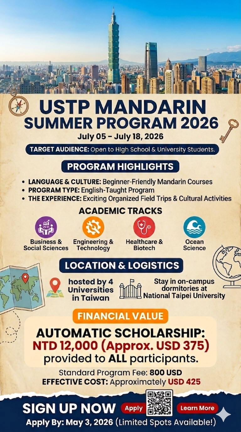 Chương trình hè USTP Mandarin Summer Program 2026 tại Đài Loan